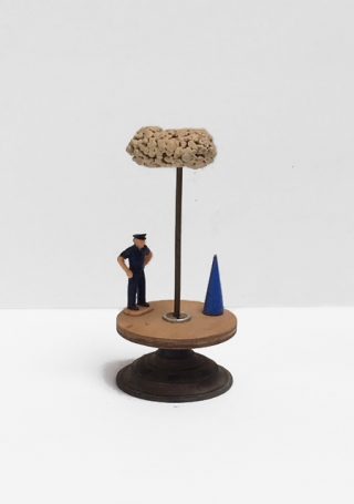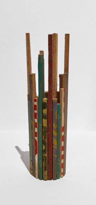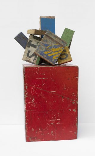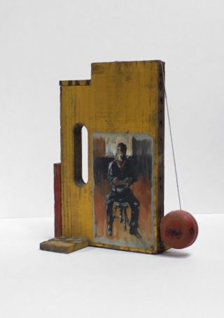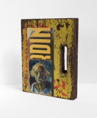 Wood, tin, metal, acrylic on card