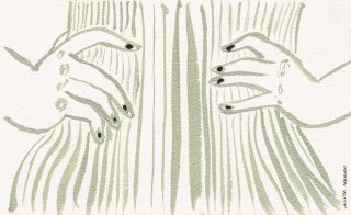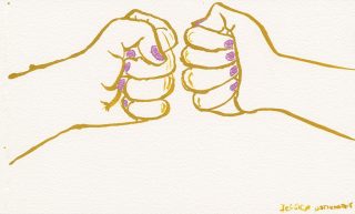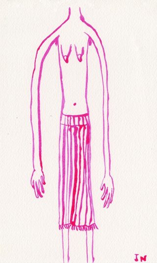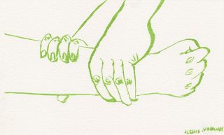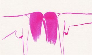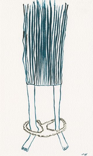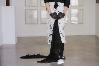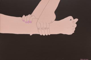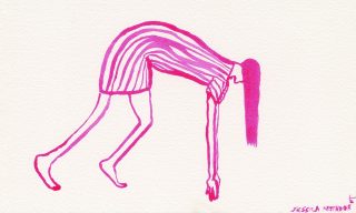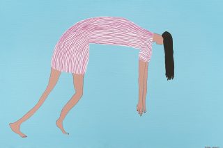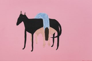 Jessica Nothdurft's latest exhibition Dreams and Nightmares uses her signature faux naïf styling to explore her evocative and raw life experiences. The show centres on hyper-restrained ink drawings, bronze sculptures and paintings; battered housewives, pregnant dogs, cages and crouched forms recur in the series. The poses and graphic depictions link the characters' relationships, creating a solid narrative around the explored reality of shame.