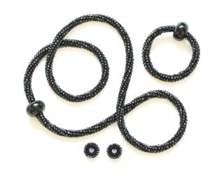 Japanese glass beads, agate feature beads, thread / Japanese glass beads, sterling silver, thread / One of a kind