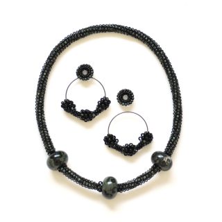 Glass and agate long necklace / Glass clip-on earrings 2018