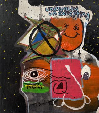 charcoal, acrylic and spray paint on 200gsm acid free cold pressed watercolour paper