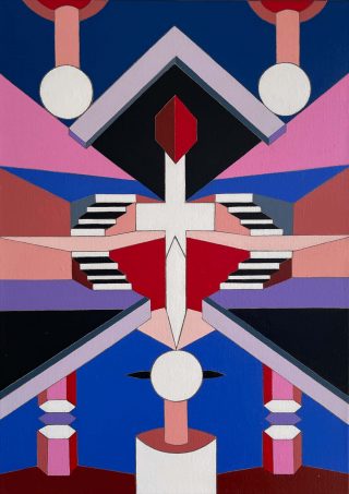 I AM THE MUSE draws on this ultimate realisation and brings incredible beauty and complexity to the works with signature colour, form and exciting composition. Mansbridge uses these principles to ignite personal storytelling in the audience, contemplating the wonder and unfamiliar imagined worlds of geometry through painting and sculpture.