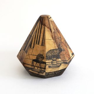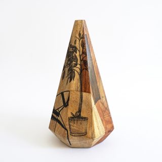 Etching ink, pencil, and acrylic on a support, made from found wood