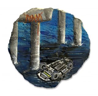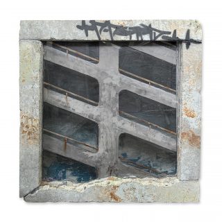 Polymer render/Acrylic on MDF. Framed in demolished Concrete with Brisbane River Rock aggregate