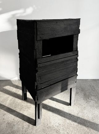 Reclaimed wood, black grout, oil paint