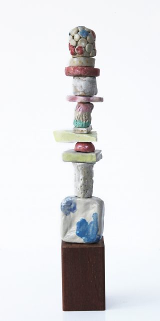 An intergenerational relationship between three Watson/Brand family women has been expressed lovingly through a new project exhibiting at Side Gallery. Memories explores three generations who actively pursued a ceramic project to document spending precious time together. Leonie Watson, Liz Watson, and Minnie Brand, ages ranging between 70 something, 40 something and 6 years old, have spent months working together to build the totemic sculptures. There is a beautiful playfulness in the process, with glazed drips and handmade texture giving the structures the “organic geometry” we see.