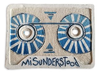 Tim Fry works with ceramic sculpture, mixed media drawing and public art. Working primarily with clay and the themes of nostalgia and connection through music, ‘Music Saves’ invites the viewer to participate in the holistic approach of using music to heal and balance their mental health. Tim explores fundamental and rudimentary tools of production, including rolling pins, kitchen knives and household hand tools. Tim then introduces glaze, underglaze, slip, oxide, lustre and tissue transfers and fires at stoneware temperatures. The results are handmade, one-off and uniquely finished sculptures that capture the essence of vintage cassette tapes and the simpler time they were from.