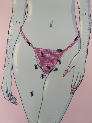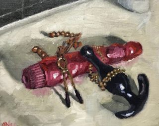 Not always explicitly graphic, some works use familiar tropes of suggestion, euphemism and symbolism to illicit recognisable sexualised content. Some works in this showcase have used explicit imagery. Both approaches to this exhibition are validly exploring themes which historically have been deemed inappropriate and offensive; the natural desires and private lives of sexuality and sexual activity have long been labelled salacious and vulgar. Interestingly, as curators we find ourselves desensitised to nakedness and nudity, and grateful for the opportunity these works present as viewers.