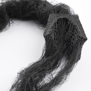 Hand sewn glass beads, thread and wire on steel stand
