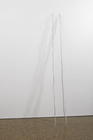 Monofilament line, found timber box, plaster