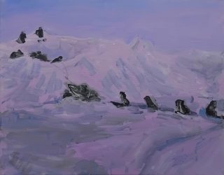 This exhibition critiques the colonial and patriarchal ambitions of the expedition, as well as its environmental consequences. Drawing on Hurley’s photographs—many of which are housed in the State Library of New South Wales—it reflects on how these images, originally captured using the early Paget colour process, now display unintentional and non-indexical hues. These altered colourations become a point of departure for experimenting with painting techniques, new pigments, and diverse substrates.