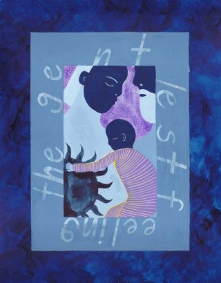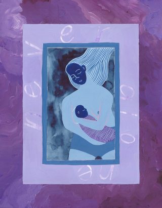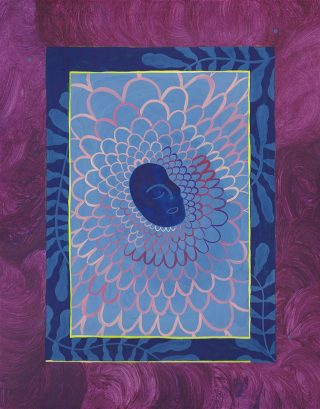 New Strength reflects Emily's first year of motherhood and experience of matrescence. Personal symbols, patterns, and recurring motifs interact with each other while introspective figures close their eyes and inhabit their inner world. The works consider the ambivalent nature of life transitions and how monumental life events can change our sense of identity, perspective, thoughts, and relationships.