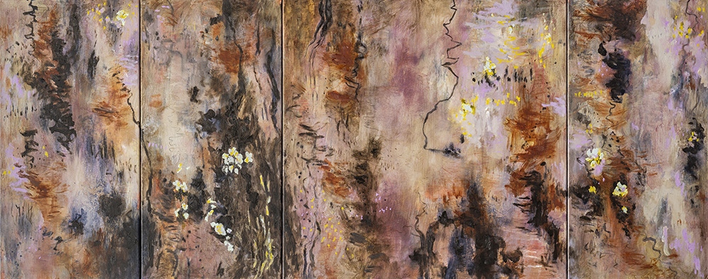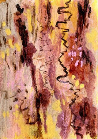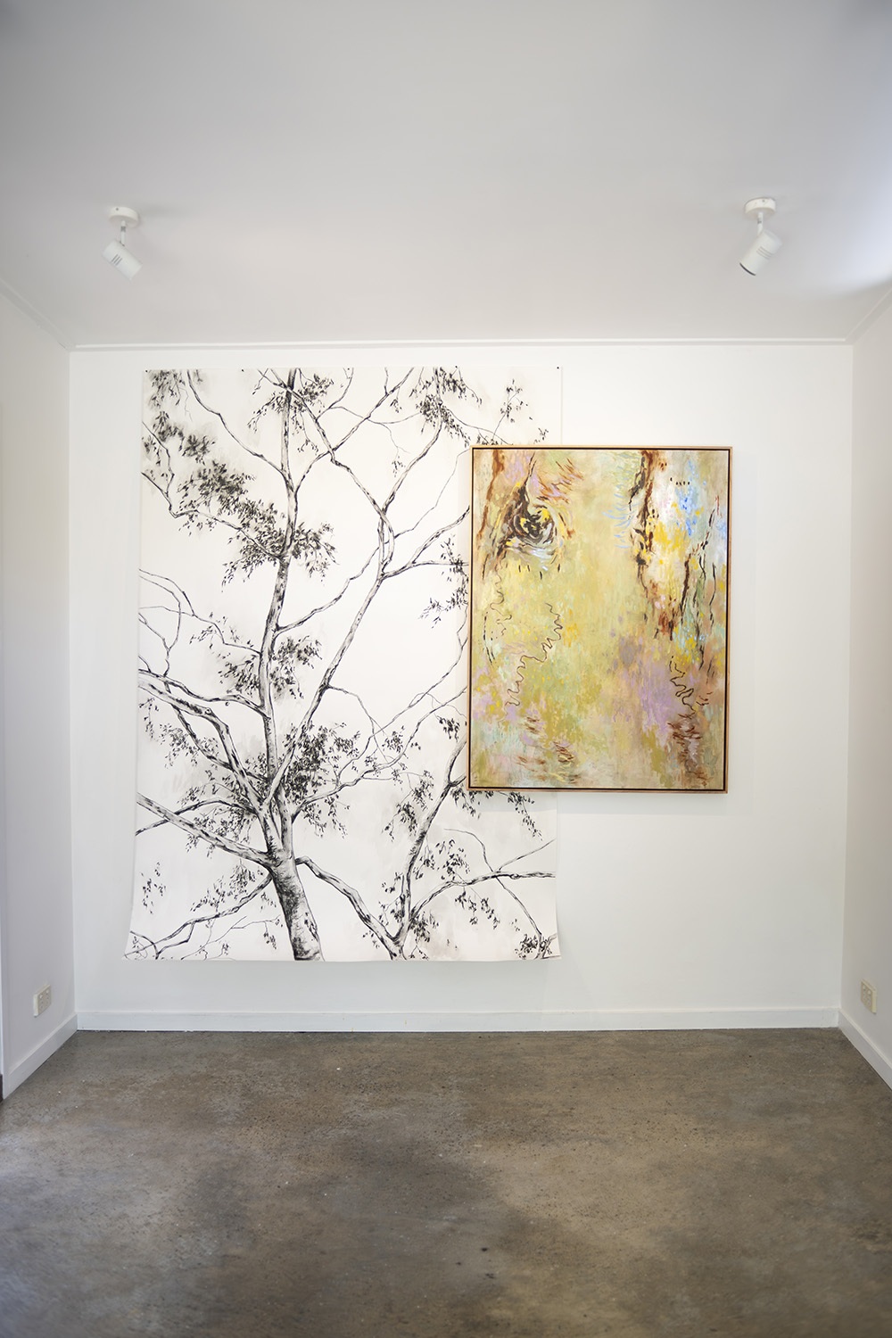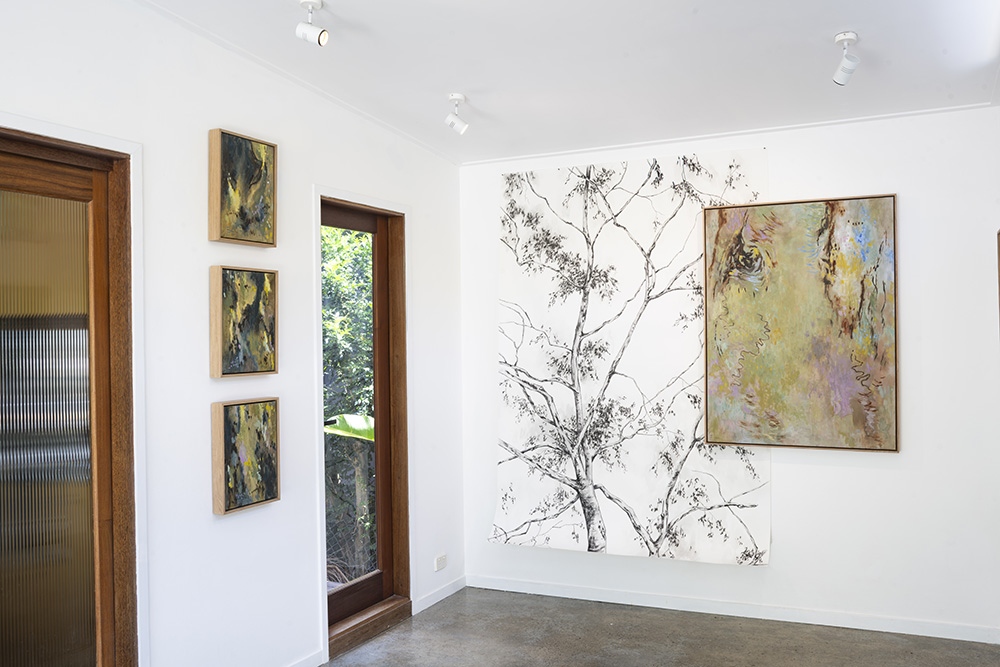 These works are inspired by our beautiful eucalyptus trees, each one based on an individual tree, focusing on their bark patterns. They represent us, the women in our histories, families and communities. They are as unique as we are, they are marked by their own colours, continually shedding their skin to reveal fresh patterns, shaped by the environment in which they grow, wearing their scars and wounds as proof of their strength and survival. They give us the air we breathe, they are our guardians, they are the epitome of resilience and endurance. These trees are individual portraits - each a character shaped by wind, water, fire, human and animal influence and time.