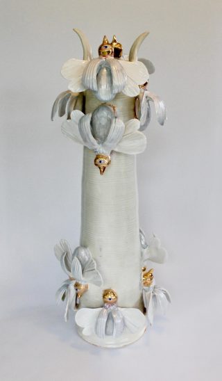 Stoneware, glaze and silver acrylic