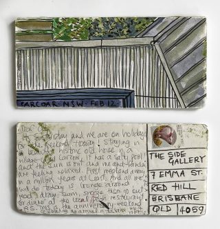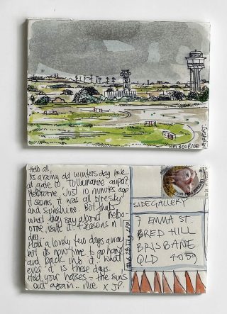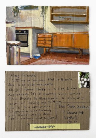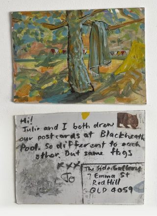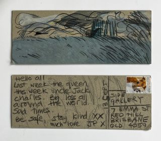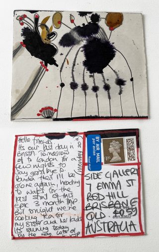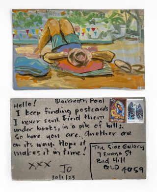 Julie has consistently sent handmade postcards to her loved ones for over 15 years. This practice ignited the project to be directed to Side Gallery, and Julie and Jo began the 'Postcards from here' project in 2022, just a little over a year ago.