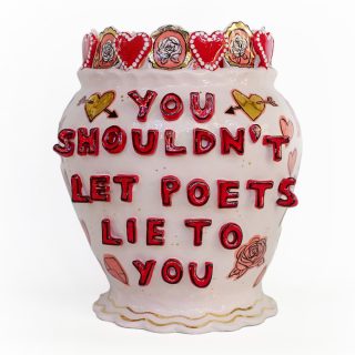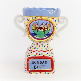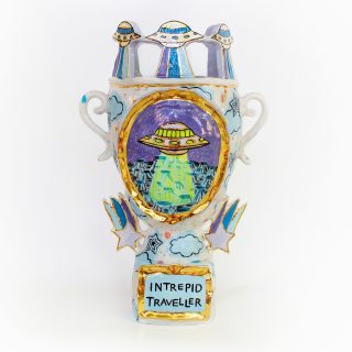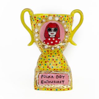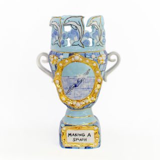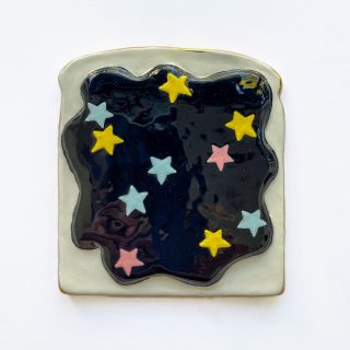 This collection of works captures the essence of daydreaming and living in a richly rewarding dreamscape filled with colourful joy, sass, and nostalgia. Bonnie describes the collection as a "surrealist fever dream in ceramic vessel form." Experiencing the work in person highlights this, alongside excellent technical skill, and the nature of Bonnie's whimsical personality, as well as statements on our sociopolitical circumstances, dance through in the dreamlike elements of her pieces.