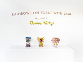 Bonnie's signature typographical treatment, alongside feminist narratives and hyper-femme motifs, allows her to document the human experience through satirical quotes, childhood motifs, and bold use of colour. This unique combination elicits feelings of wistfulness and delight, making her narratives highly relatable. Rainbows on Toast with Jam is an extension of the daydream we experience when encountering Bonnie's creative and characteristically joyful work. It is the fever dream that refuses to dissipate.