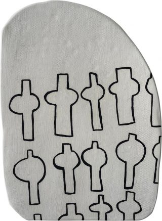 Kitty’s artworks have explored the materiality of a combination of oils, mixed media, ceramics and drawing. Inspired by the American Minimalists, Kitty investigates her surroundings by creating distorted shapes, forms and motifs. Mark-making and the serendipitous accident extend the relationship between painting and drawing. Kitty has recently engaged with spatial configurations of interior objects to provide compositional structures. The mediums of drawing, ceramics and painting enable Kitty to further investigate the hard and soft duality of opposing, sometimes complimentary, interior forms.