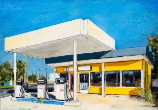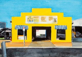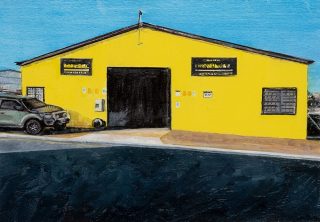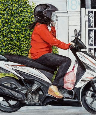 The subjects in these paintings share certain common features yet differ in other aspects, all linked by the road. The public space that borders various private spaces becomes the stage for diverse interactions, a theme that fascinates me in this body of work. I am drawn to the familiar and unfamiliar, the ambiguous and humorous, and the places where these interactions unfold.