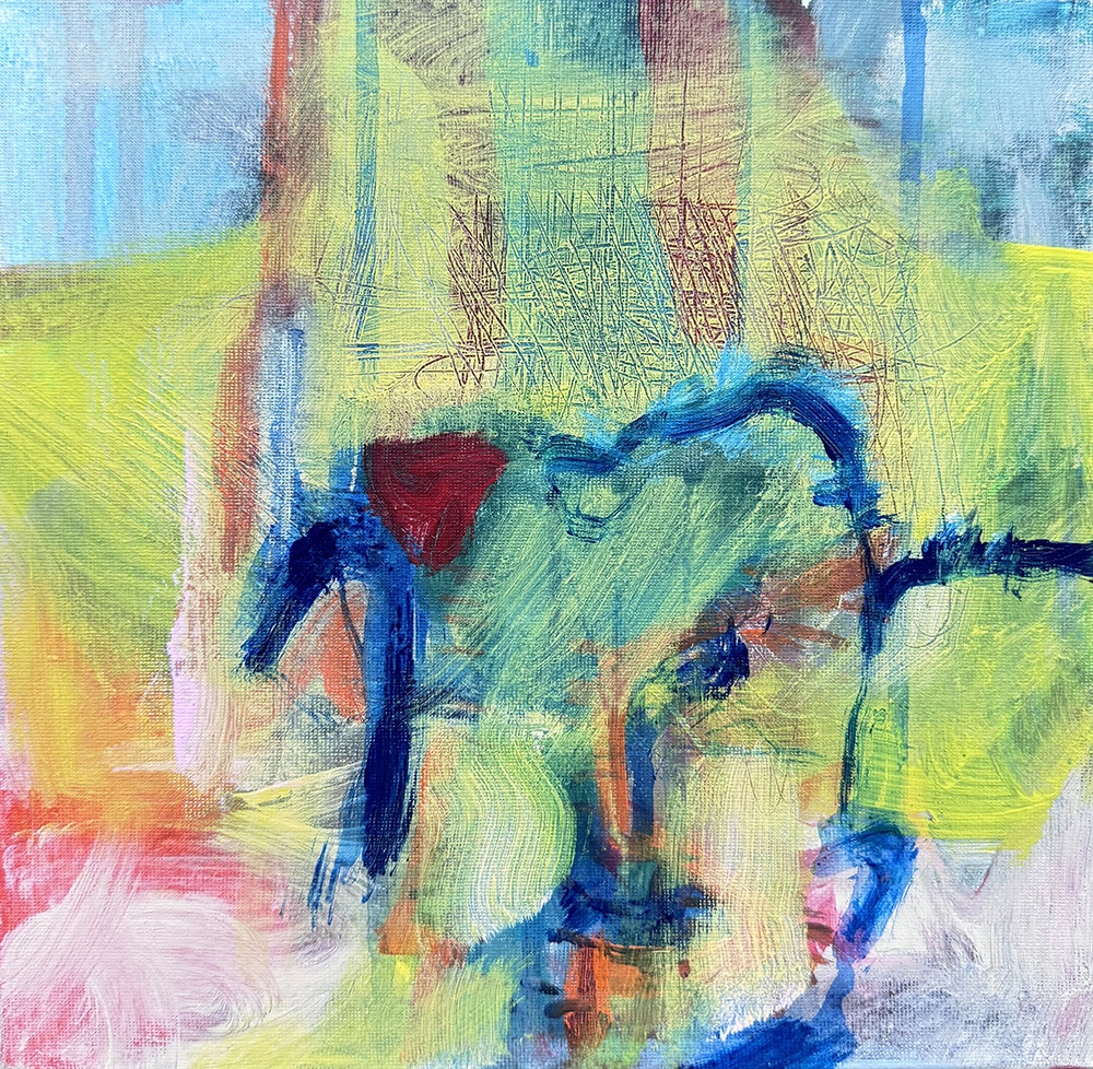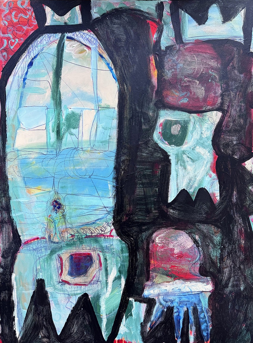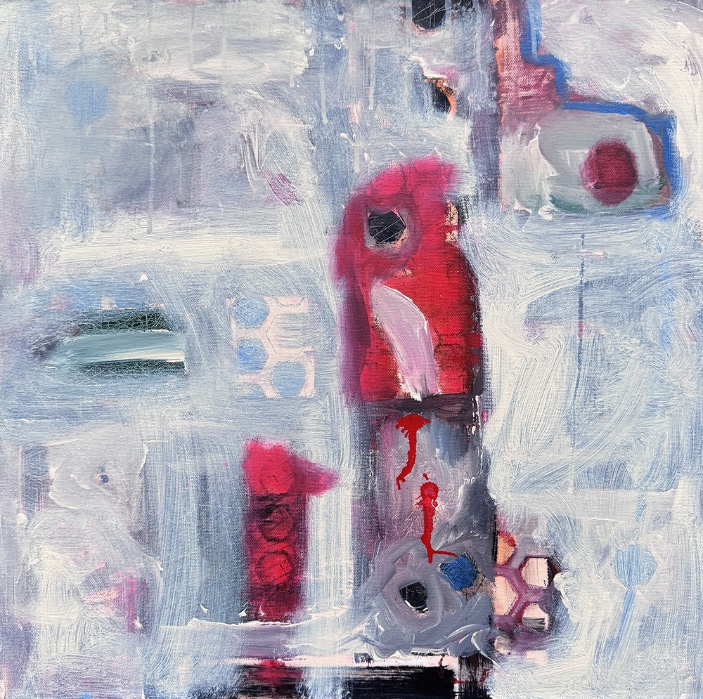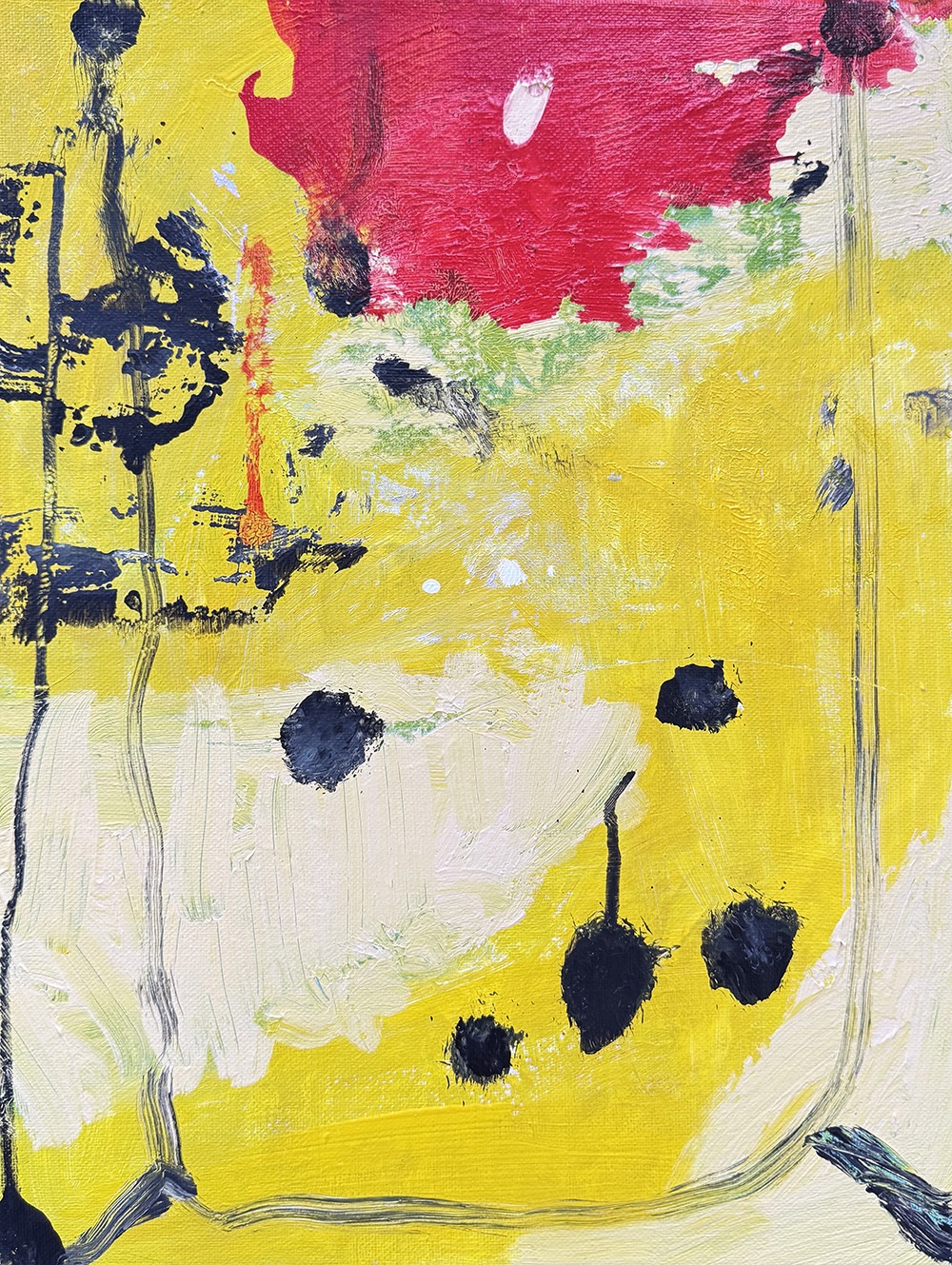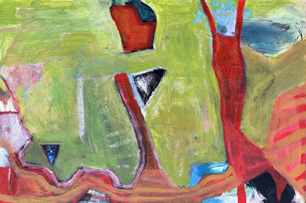 The latest exhibition by Kirsi Reinikka, Seeking & Finding emerged after two intense years of art-making with a focus on painting, and now exists as the iteration of earlier explorations, beginning in 2020. The first shift toward loosening her expression began while working in Alice Springs, NT, where she attended short-term art workshops at Charles Darwin University. This continued in 2021 through ‘Art as Therapy’ group sessions she co-facilitated at World Wellness Group in Brisbane, where she explored materials, lines, shapes and ideas alongside participants.