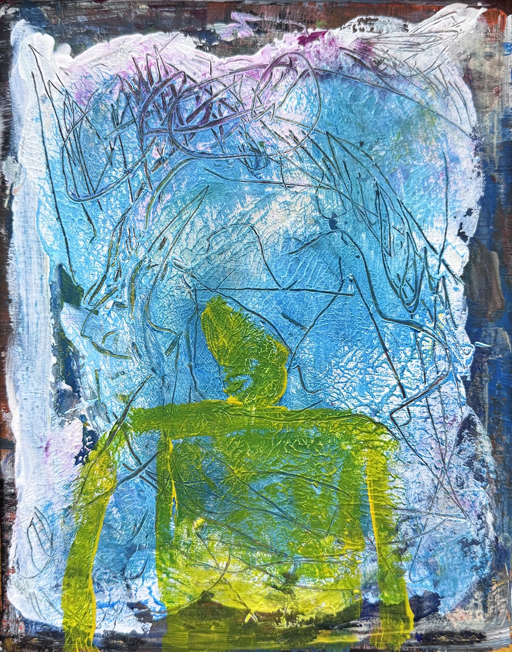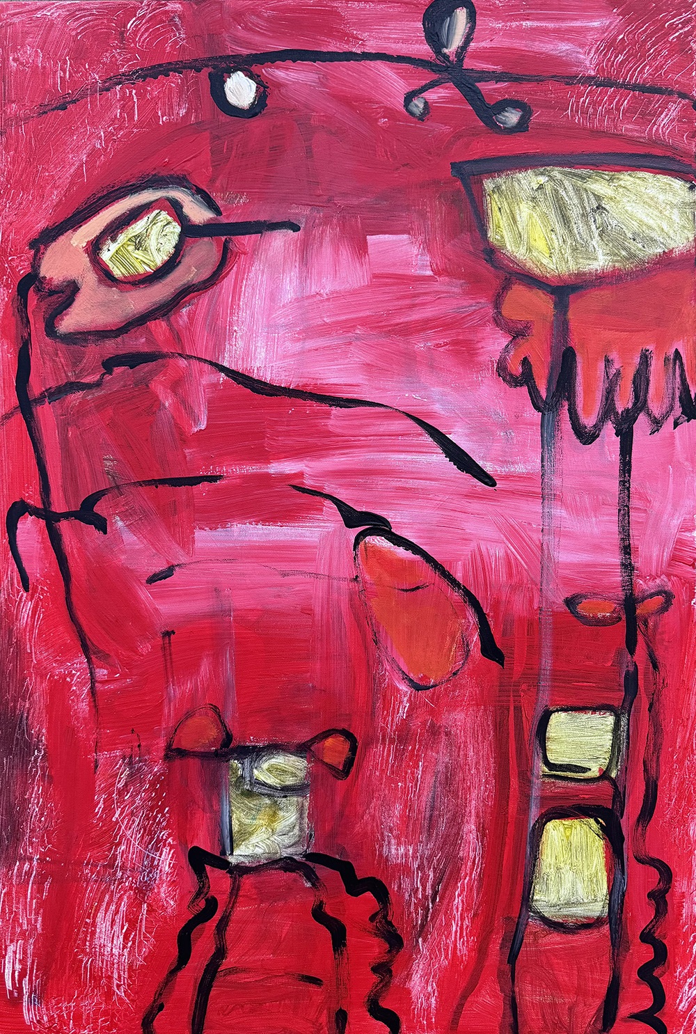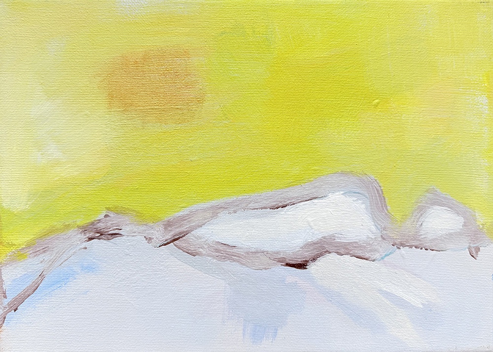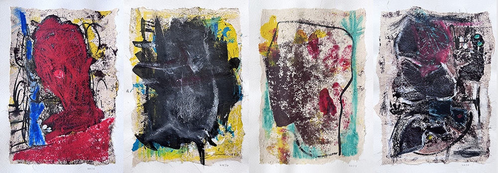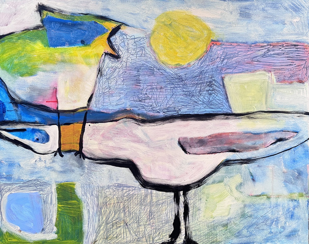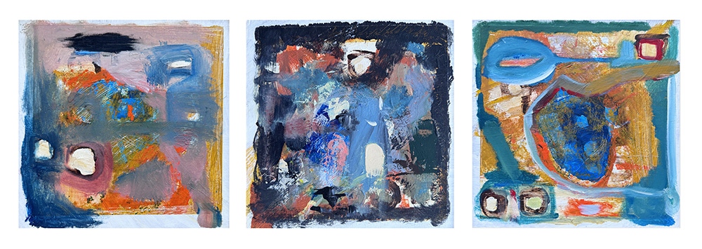 The latest exhibition by Kirsi Reinikka, Seeking & Finding emerged after two intense years of art-making with a focus on painting, and now exists as the iteration of earlier explorations, beginning in 2020. The first shift toward loosening her expression began while working in Alice Springs, NT, where she attended short-term art workshops at Charles Darwin University. This continued in 2021 through ‘Art as Therapy’ group sessions she co-facilitated at World Wellness Group in Brisbane, where she explored materials, lines, shapes and ideas alongside participants.