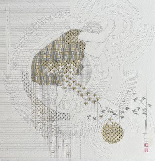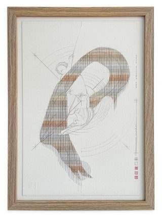 Beadweaving & pencil on 638 gsm on wood plinth