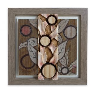 Carved & stained wood, pencil & watercolour on 425 gsm CP on board
