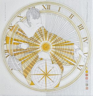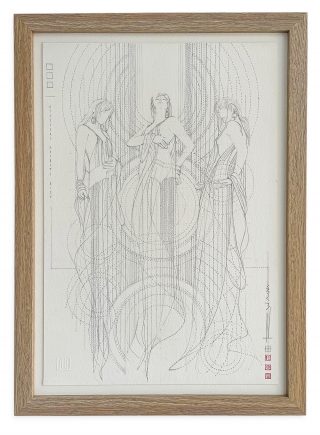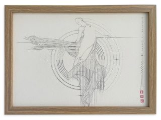 Leadlight & pencil on 638 gsm CP with wood mounting