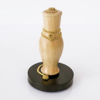 Turned wood on wood plinth, bead-weaving