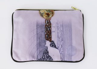 Poly canvas clutch bag with beadwoven detail