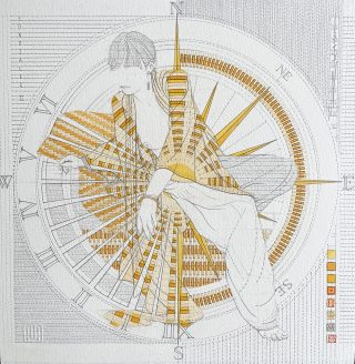 Beadweaving & pencil on 638 gsm CP on wood on plinth. Design — River Rose, USA