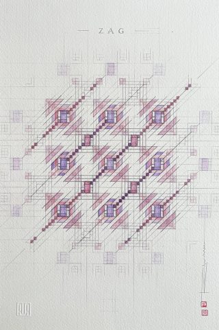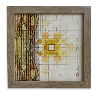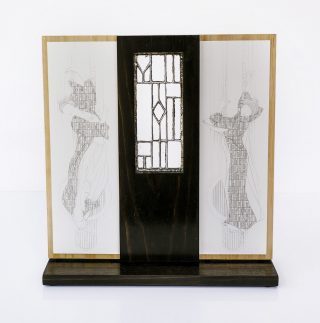 Leadlight & pencil on 425 gsm CP with wood mounting