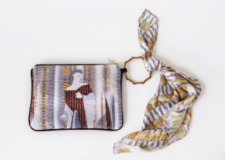 Poly canvas clutch bag with scarf & beadwoven bangle