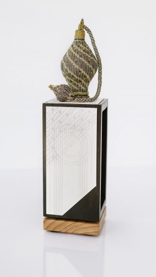 Beadweaving & pencil on 638 gsm on wood plinth. Design — Tracey Lorraine, UK