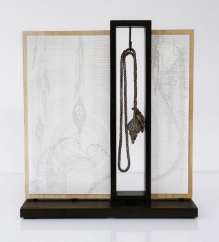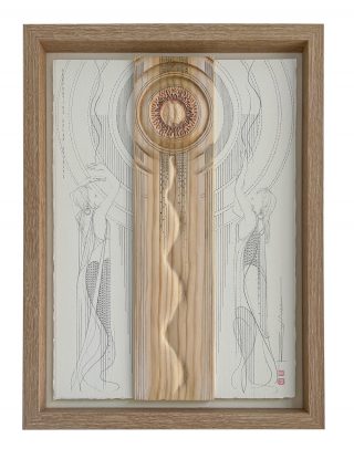 Turned & carved wood, pencil, ink & watercolour on 638 gsm CP on board