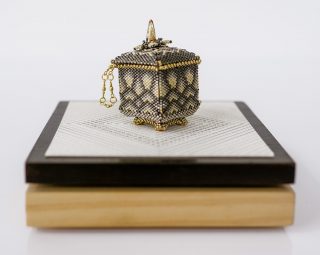 Beadweaving on wood plinth. Design — Sabine Lippert, Germany