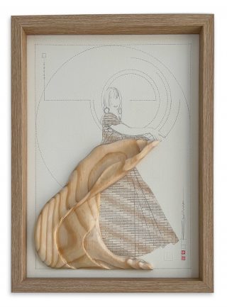 Carved wood and pencil on 425 gsm CP on board
