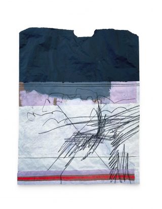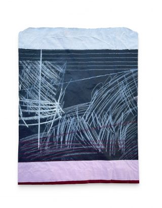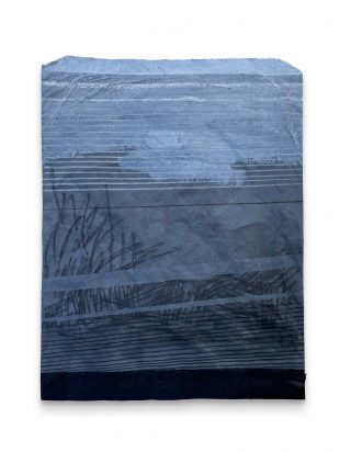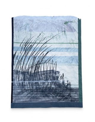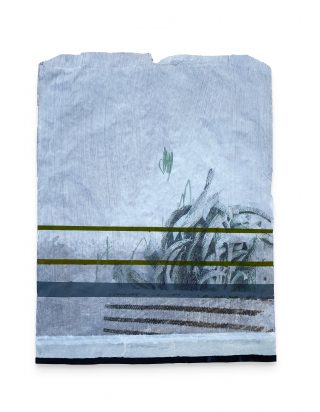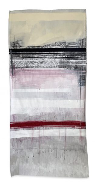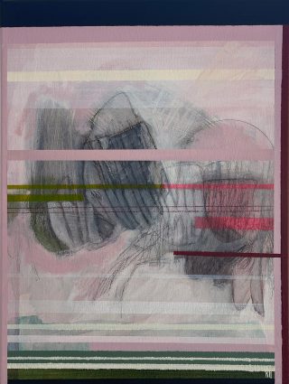 In a shift from the artist’s usual representational work, Kitty Horton presents new abstracted work in Still Line. Exploring painterly qualities and process-based colour application, Horton focused on eliminating recurring motifs and instead allowed the playful, imperfect satisfaction of working with materials to form the basis for these works. The lines that dominate the pieces are the new motif, used as a form of gestural mark-making that is imperfect and unmeasured.