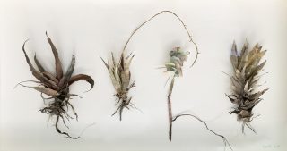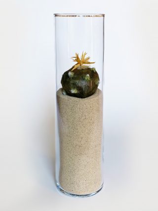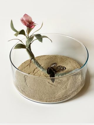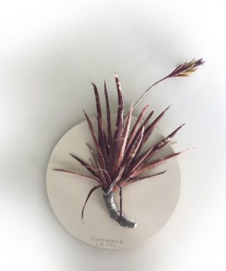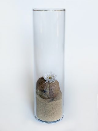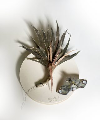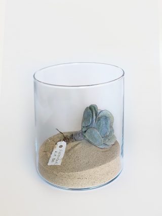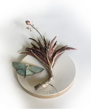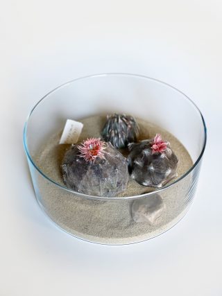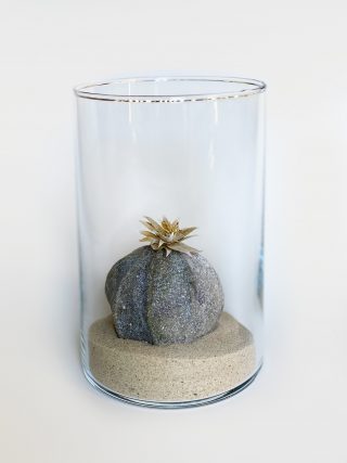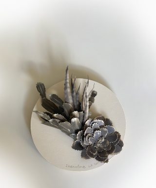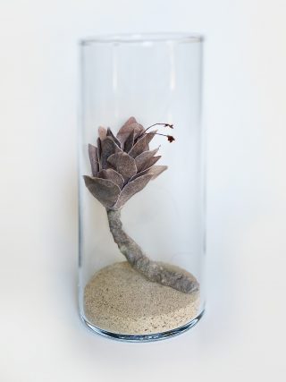 A dual showcase across Mt Coot-tha Botanic Gardens and Side Gallery, Lesley Kendall’s new body of work continues to explore the relationship between nature and the viewer. Delicate, hand made paper sculptures of succulents, insects and rocks are collected like specimens and placed beneath cloches, adorned on wall mounts and painted with ink and watercolour. The exhibition at Side Gallery brings the installation from the Cactus House into the gallery for the audience to acquaint themselves with the realistic portrayals of Lesley’s paper practice.