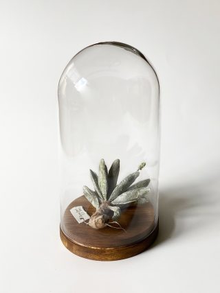 Glass dome, wood base and paper