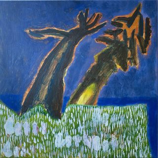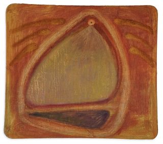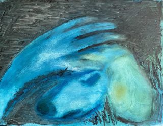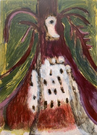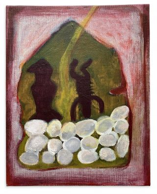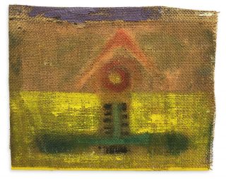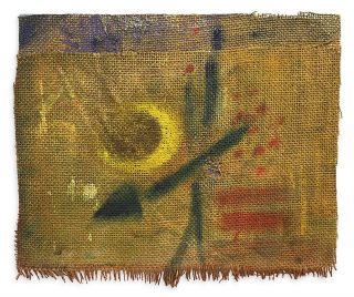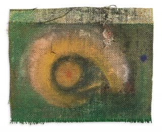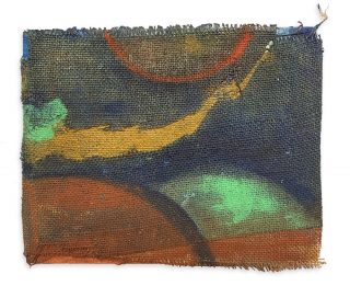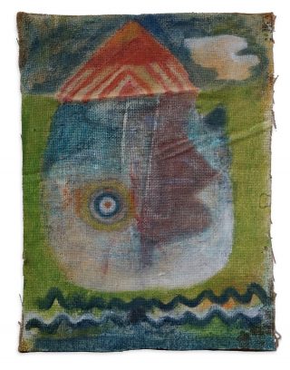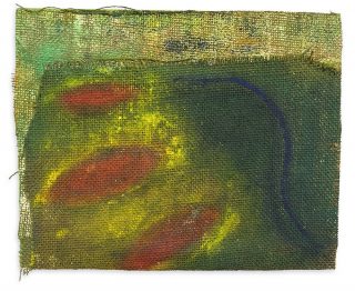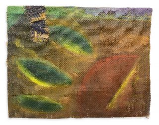 Oil and acrylic on burlap on canvas board