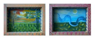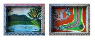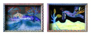 Double sided painting, acrylic on glass