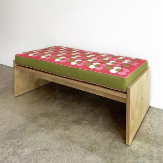 Hoop pine bench seat with white oak inlays and tung oil finish Organic cotton cushion with Dunlop foam insert