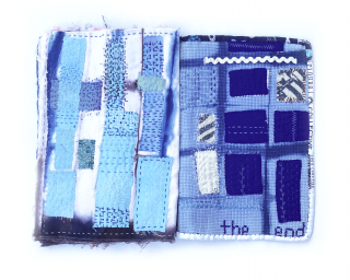 cotton, shibori dyed fabric book, embroidered text