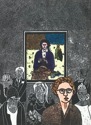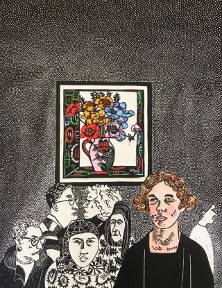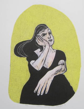 Hand-coloured Lino print