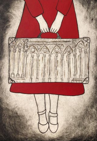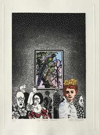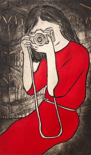 Etching, hand painted with acrylic, ink and gold leaf