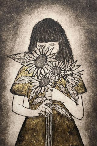 Etching, hand painted with ink and gold leaf