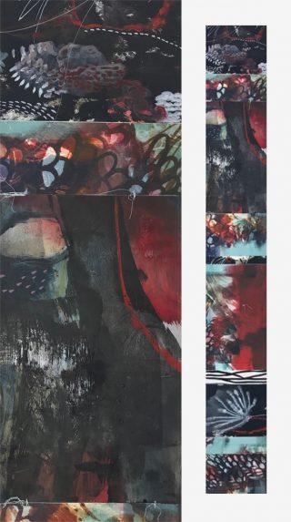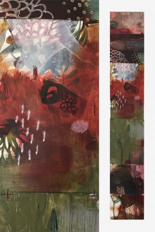 Unfolding Surfaces; An exploration into memory and impermanence is Tiel Seivl-Keevers’ investigative series into the artist’s memory-based and site specific nostalgia of found objects. Tiel accumulates collections of botanical and fibrous items from natural surroundings and builds layers upon layers of marks and etchings which resonate with the object’s form. Impermanence as a concept mirrors a resonation with nature; seasons and cyclical change. These marks and etchings too have an inherent impermanence as Tiel covers and uncovers, marks and unmarks, folds and unfolds. Tiel sews these concepts together with representative Australian flora symbols collected on her journeys. The resulting works in this series, regardless of medium, always uncovers another memory of a journey on foot through the Australian landscape.