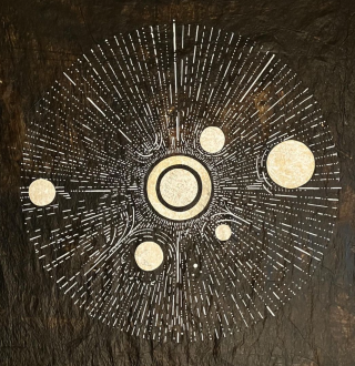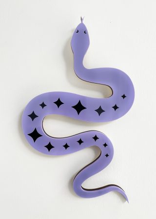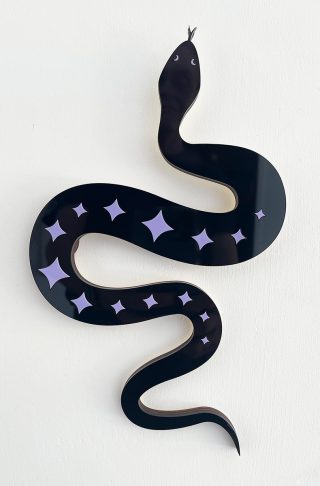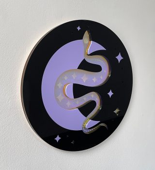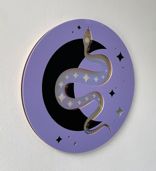 Lilac, black and iridescent acrylic with plywood backing