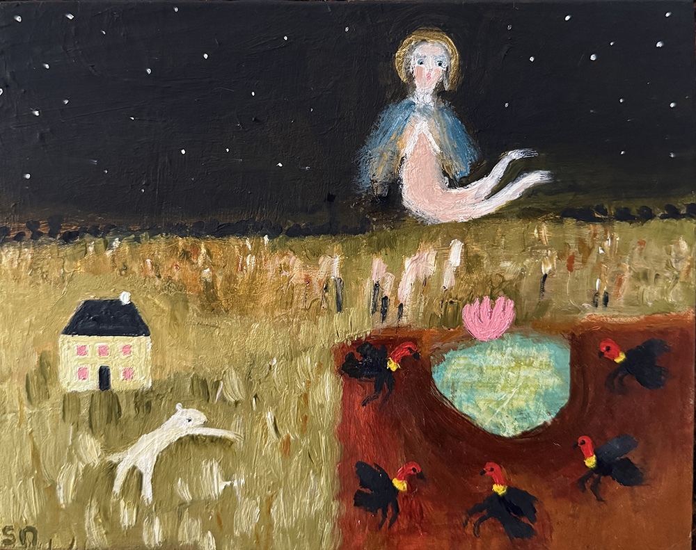 Oil and acrylic on canvas panel